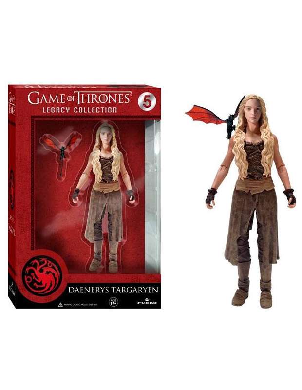 Figura articulada del personaje Daenerys Targaryen de la serie de Tv Juego de Tronos.Figura fabricada por Funko y presentado en caja con ventana.Tamaño 16cms aprox y fabricada en plástico.