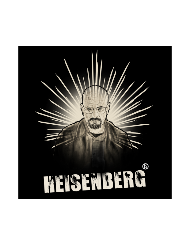 En este diseño juego con el contraste y hago ver que Heisenberg y Walter White son una misma consciencia, solo que la de Heisemberg aún está dormida, poniendo como un santo a Mr. White con cara de bueno como es al principio de su transformación y contrarrestándolo con un Texto que reza Heisemberg en letras claras pero sacando a la luz la vida de narcotraficante que lleva Walter White .