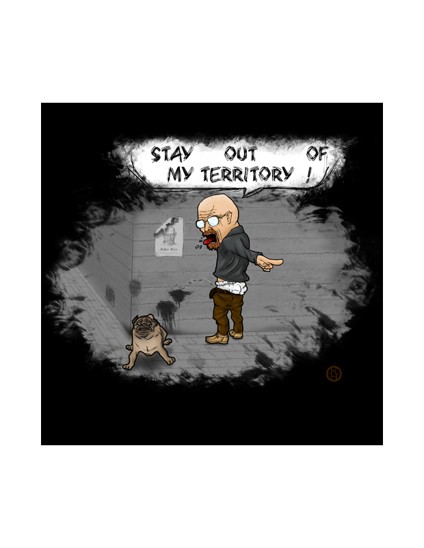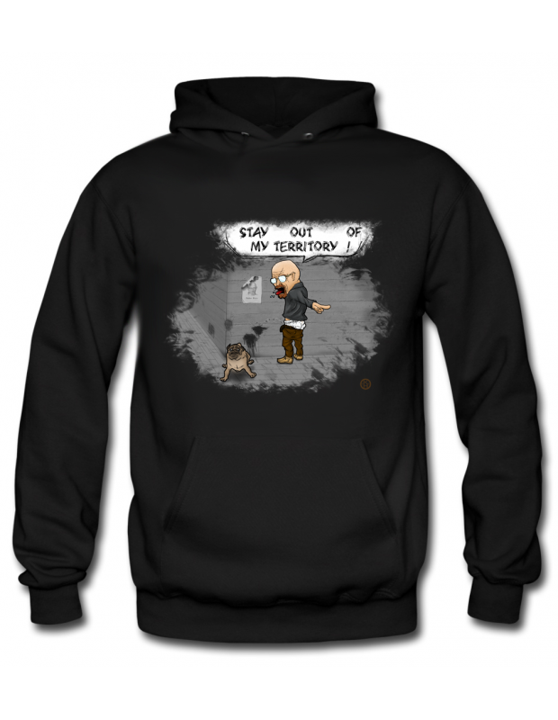 Sudadera de la serie Breaking bad con Heisenberg gritando Stay out of my territory! a un perro- Kevin Heiwart. Sudadera negra, algodón 100%.