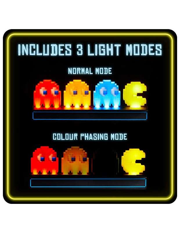 Fantástica Lampara de sobre mesa de Pac-man con los fantasmas para fans de los videojuegos Una fantástica lámpara friki que iluminará el rincon preferido de tu habitación. Tiene unas medidas de unos 30 cms de largo por unos 10 cms de alto