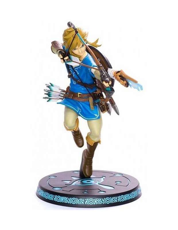 Figura del personaje Link, del videojuego The Legend of Zelda: Breath of the Wild, de Nintendo. Fabricada en PVC con todo lujo de detalle por First 4 Figures y de aproximadamente unos 25 cm de altura. Incluye una base grabada con el Ojo de la Piedra Sheikah de la saga Zelda.Ésta fantástica figura de Zelda viene presentada en una bonita caja de cartón con ventana decorada con la temática Zelda.