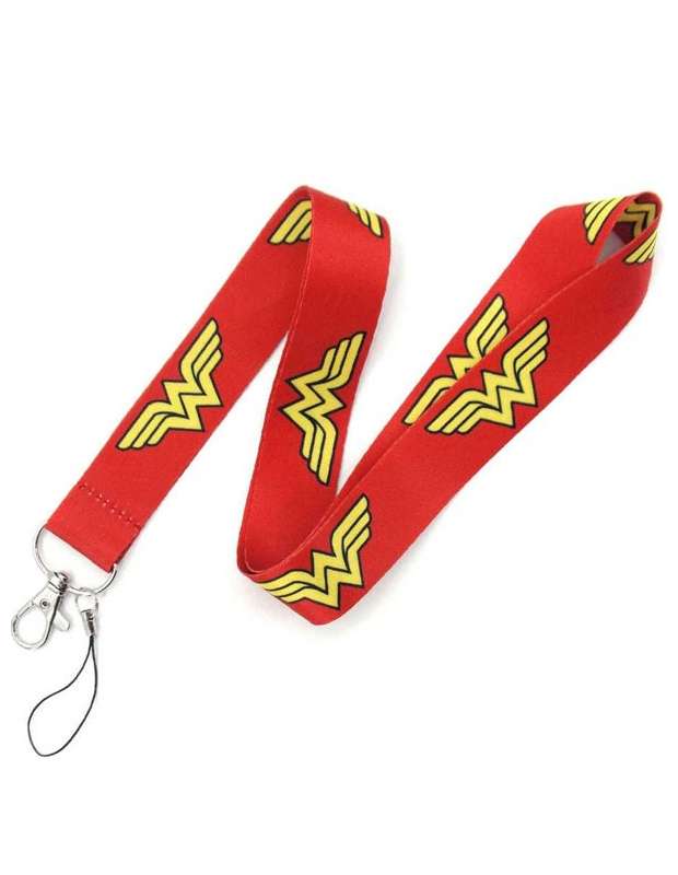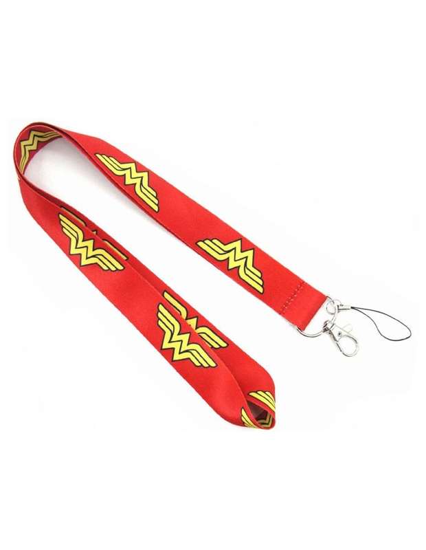Lanyard (Llavero) inspirado en la Superheroína Wonder Woman de Dc Comics de unos 45 cms de largo y 2,4 cms de ancho. Este Lanyard está totalmente estampado por todas las caras en color roho con el logo de Wonder Woman