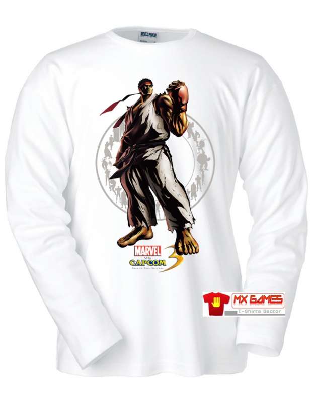 Camiseta Marvel vs Capcom 3 "Ryu" Manga Larga Blanca algodon 100%