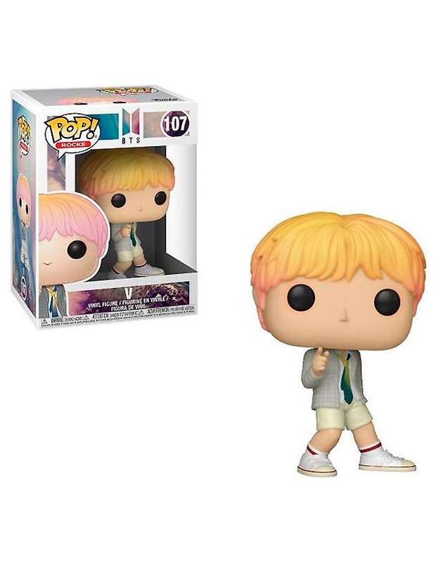 Funko Pop! de Kim Tae-hyung, más conocido por su nombre artístico V, del grupo BTS música Pop coreana de K-Pop (Bangtan Sonyeondan)El Funko Pop de V tiene muy buenos y respecto a su función dentro del grupo es cantante, modelo, actor, bailarín y compositor, por lo que es un polifacético dentro del grupo BTS.