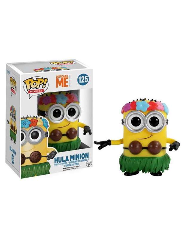 Funko Pop vinyl del minion Hula Minion nº125 de la pelicula Gru presentada en caja original con ventana fabricado en vinilo por Funko.Tamaño unos 10 cms.