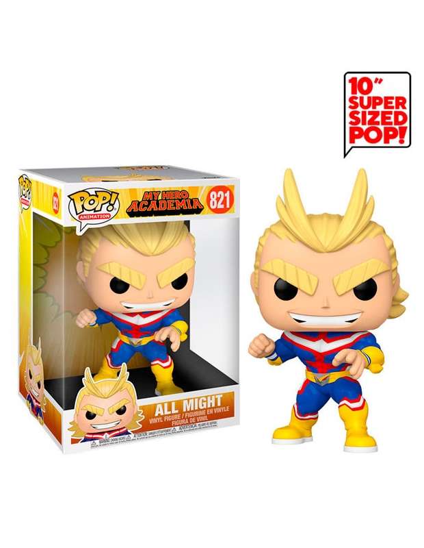 Funko Pop de All Might con traje de superhéroe edición especial supersized de 25 cms de altura de la serie de Animación My Hero Academia "Boku no hero". El Funko Pop de All Might, el carismático maestro de la academia UA, tiene un gran tamaño, no solo sus 25 cms de altura si no que tambien su anchura es muy considerable, por lo que esta figura es una gran pieza de colección y decoración.