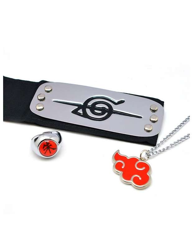 • Set copuesto por: Bandana, anillo Itachi y colgante akatsuki
