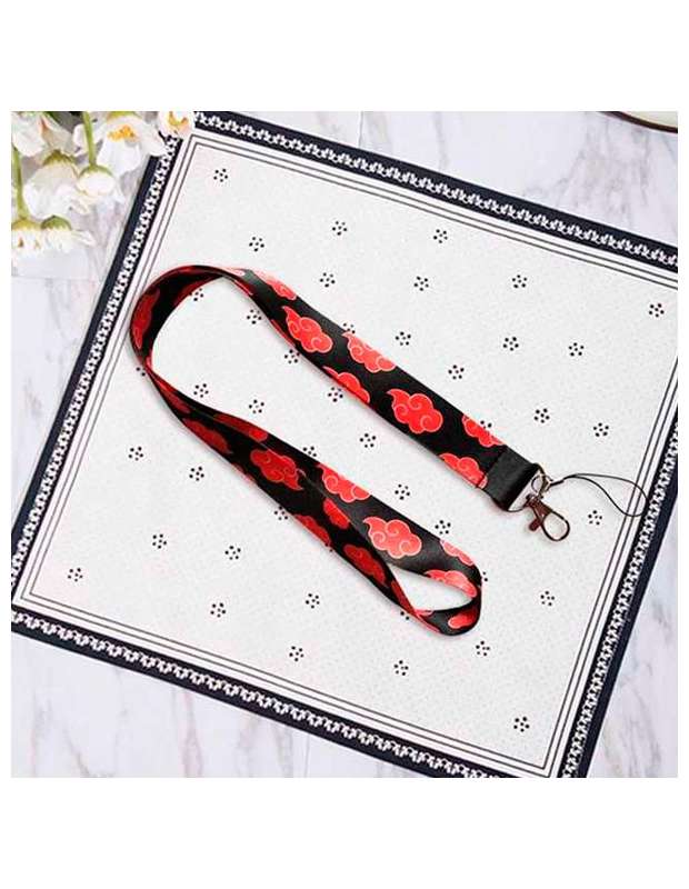 Lanyard (Llavero) Akatsuki inspirado la serie de anime Naruto de unos 45 cms de largo y 2,4 cms de ancho. Este Lanyard está totalmente estampado por todas las caras con motivos de las nubes rojas - Akatsuki.