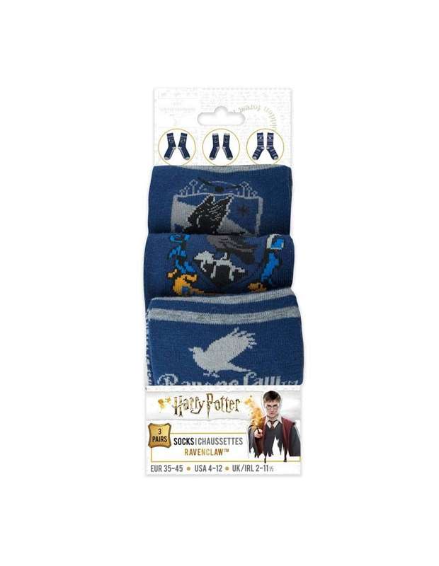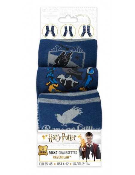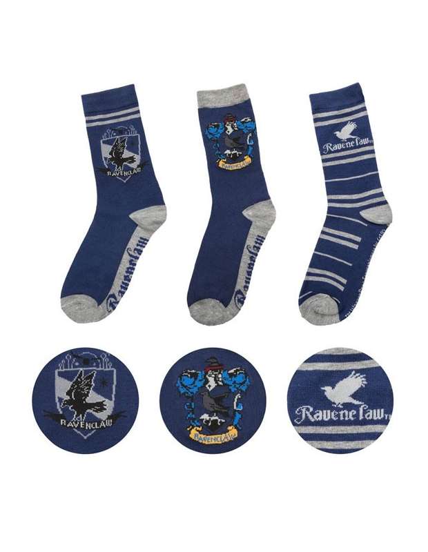 Estupendo pack de 3 pares de calcetines de Harry Potter de la casa Ravenclaw de la prestigiosa marca cinerelicas.