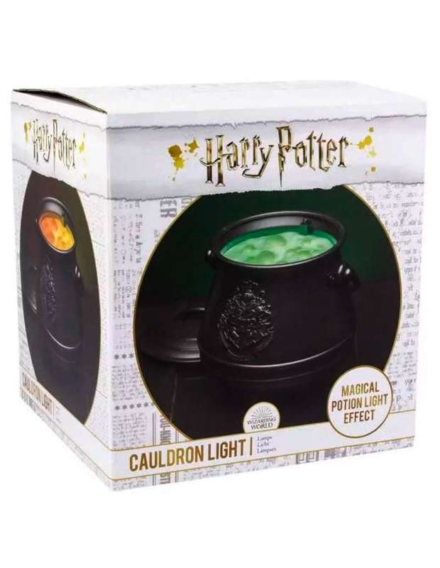 Fantástica Lampara Mágica de Harry Potter. Ilumina los rincones más oscuros de tu hogar con esta hermosa lámpara 3D de Harry Potter en forma de caldero mágico que mide unas impresionantes dimensiones de 18x18 cm aroc. Tiene un mágico efecto de luces de colores burbujeantes que te fascinará ya que este caldero tambien contiene escudo de la escualea de Magia y Hechicería de Hogwarts. Al Quitar la tapa del caldero se enciende ty al poner la tapa apaga la luz y la luz se alimenta mediante USB (cable USB incluido) o 3 pilas AA (no incluidas) . Sin duda un fantástico regalo de merchandising para cualquier fan de Harry Potter.