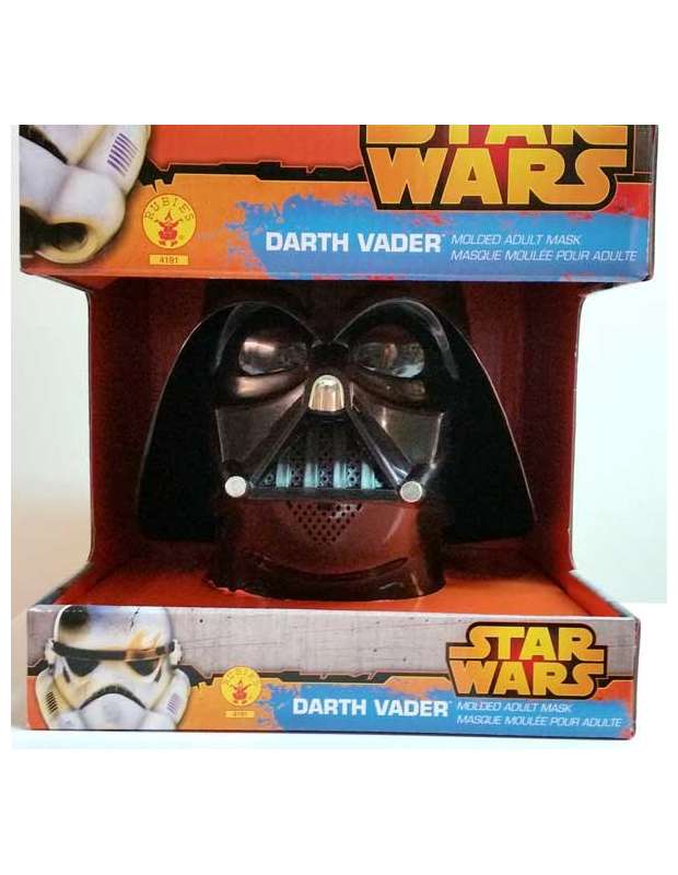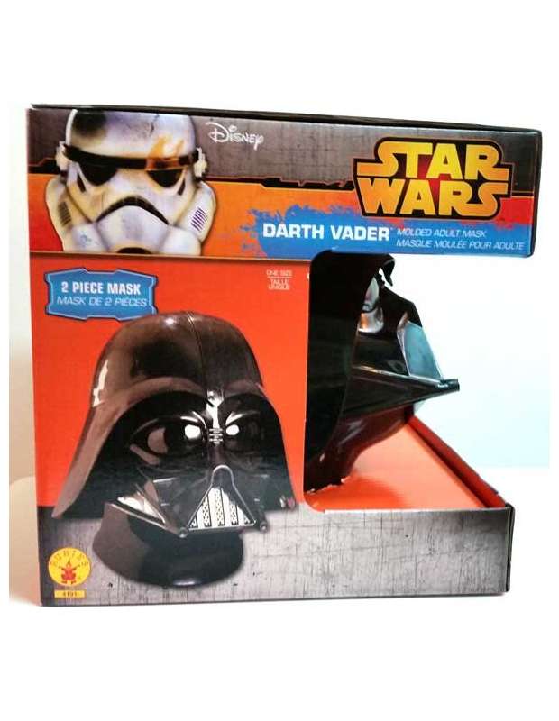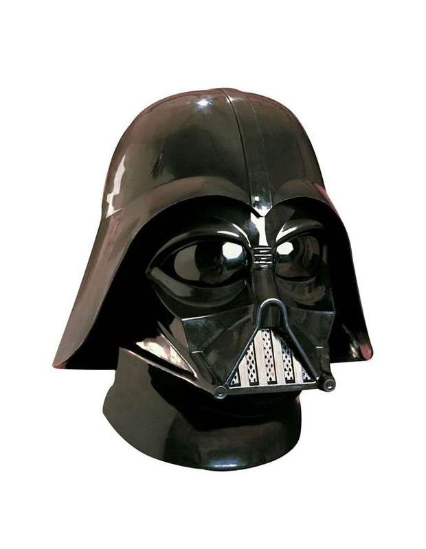 Una gran réplica del casco de Darth Vader en 2 pieza moldeadas en plástico del fabricante Rubie Costume Company.