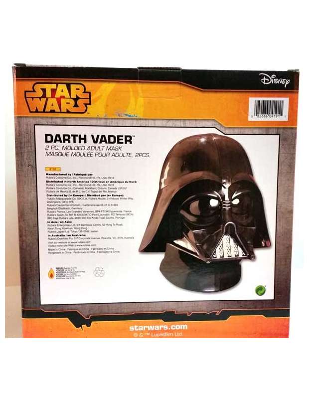 Una impresionante réplica del casco de Darth Vader como se ve en las películas de Star Wars, con su embalaje original, el casco está diseñado en dos piezas, por lo que se puede colocar y quitar fácilmente . Los ojos de la máscara de Darth Vader son un negro un espejo por lo que no se ven los ojos en el interior.