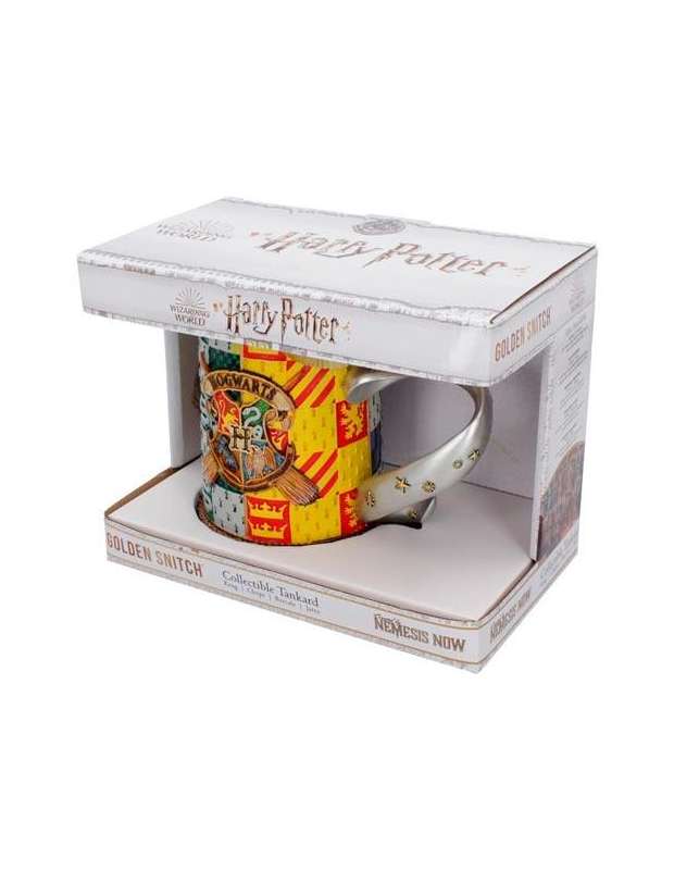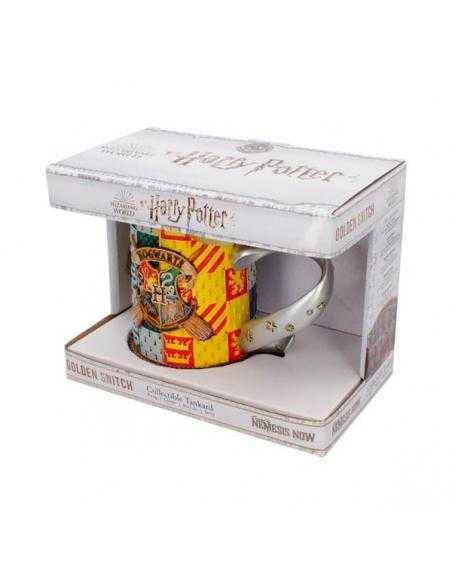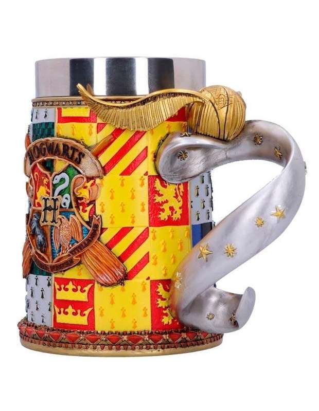 Se trara de una Jarra de Harry Potter con licencia oficial, con unos inmejorables acabados en relieve realizados en resina y pintada a mano por artistas, decorada con motivos del juego de Quiddtch de las cuatro casas de Hogwarts y la famosa Snitch coronando el asa de la jarra.