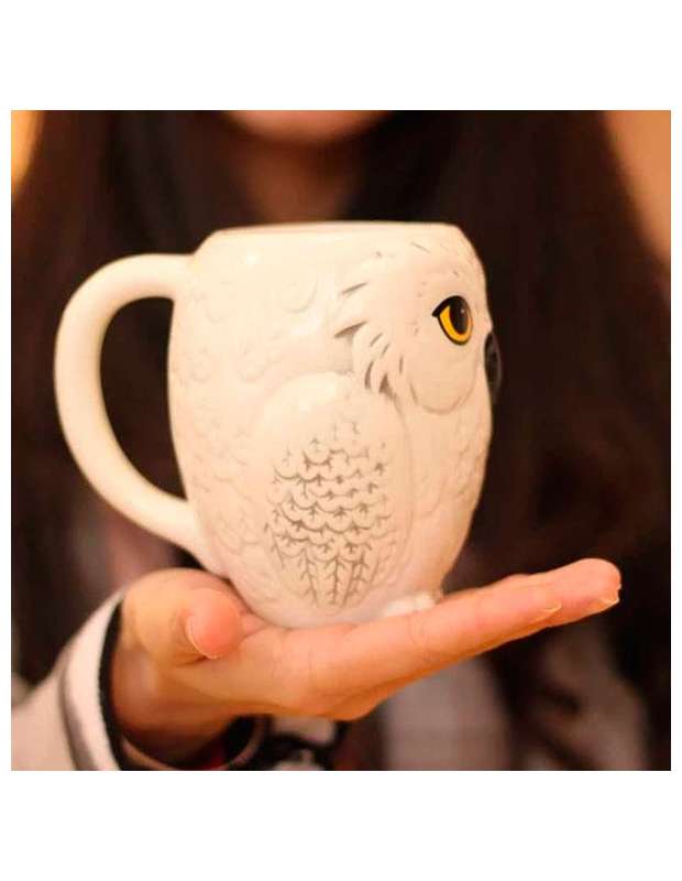 Taza de Hewig, la famosa lechuza mágica amiga de Harry Potter con forma 3D y asa en la parte trasera. La taza que cualquier mago o bruja de Hogwarts desearía para su desayuno té o café. Posee un gran detalle y brillo en sus formas 3D.