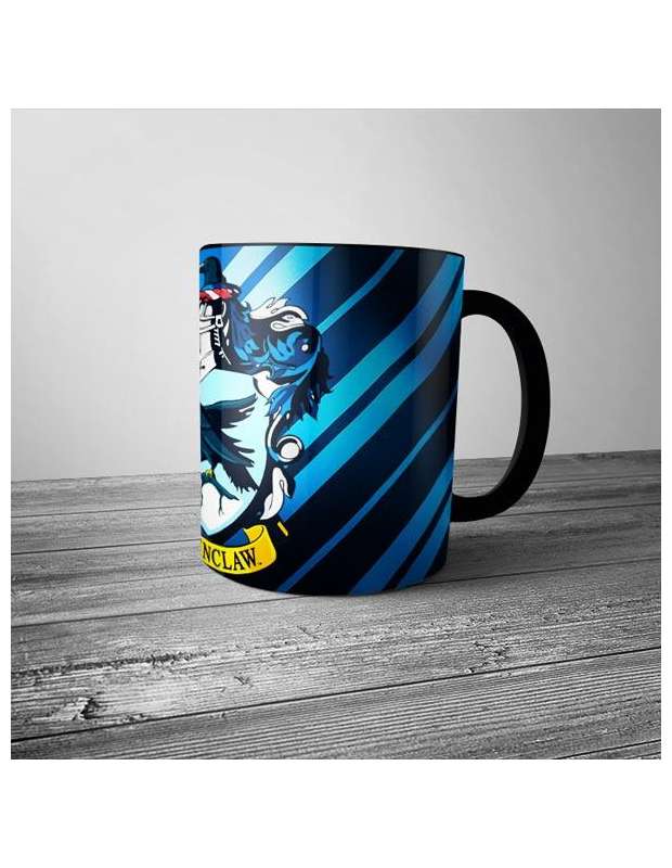 Taza decorada con un diseño muy original del la casa Ravenclaw. La taza que cualquier mago o bruja de Ravenclaw necesta para su desayuno té o café. Esta fantástica taza además resiste el microondas y el lavavajillas y está fabricada en cerámica blanca con el asa el interior en color negro