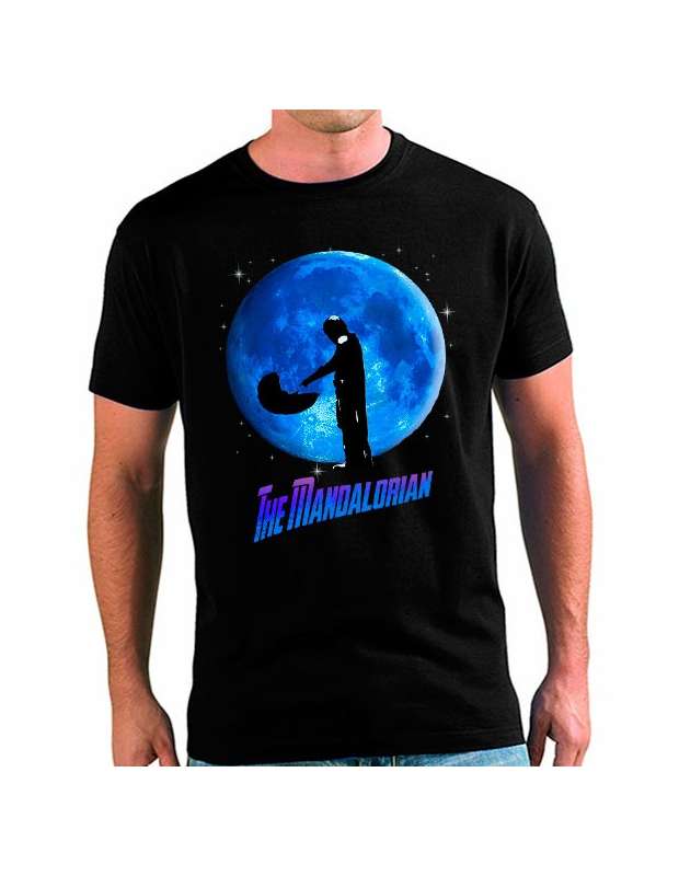 Camiseta Star Wars personalizada con un diseño muy original The Mandalorian tocando con el dedo al bebé de la raza Yoda al estilo de Miguel Angel ( la creación de Adan;cuando dios toca el dedo de Adan para darle vida). Se trata de una camiseta ilustrada con una fantástica escena, inspirada en la serie de Star Wars The Mandalorian con una imágen del propio Madaloriano y el bebé de la raza Yoda con una bonita luna azul de fondo. Diseño exclusivo de esta web que no encontrarás en otros sitios.
