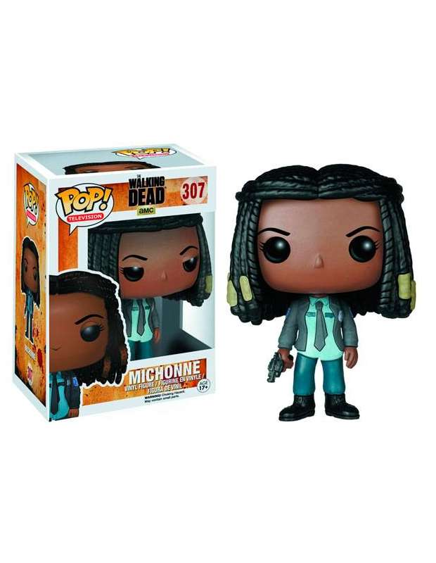 Figura Funko pop! Michonne de The Walking Dead con el traje de policia de Alexandría. Funko Pop The Walking Dead nº307 presentado en caja original con ventana.Tamaño 10cms (tamaño standar de figuras Pop) fabricada en vinilo.