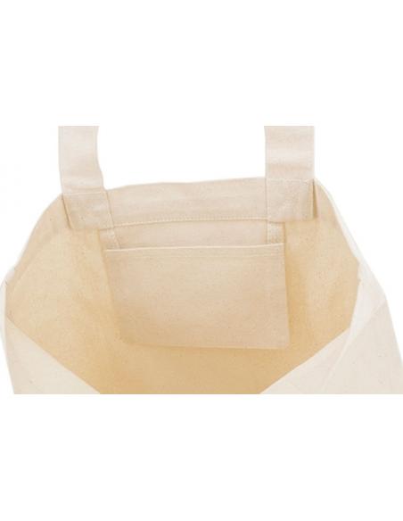 Esta bolsa es de estilo Tote Bag y tiene un pequeño fuelle de unos 8 cms, por lo que aumenta considerablemente la capacidad y te permite llevar más cosas. Está hecho en tela canvas gruesa de algodón de buena resistencia y es ideal para ir de compras, a la playa o simplemente ir a pasear.