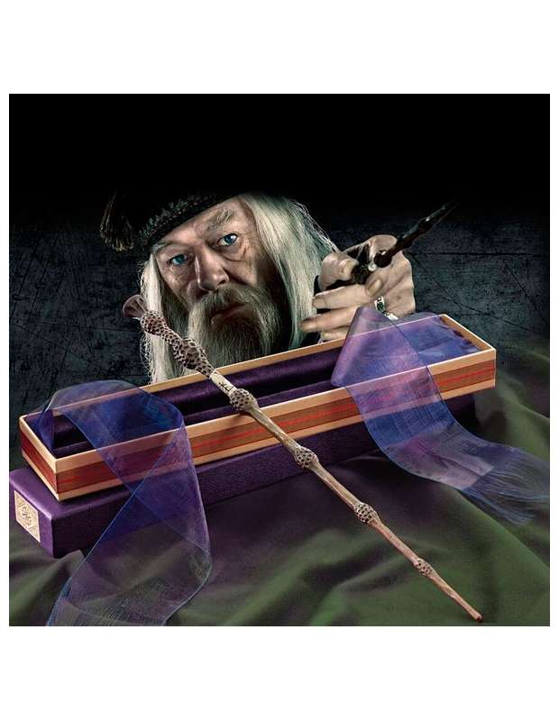 Varita mágica del profesor Albus Dumbledore oficial Noble Collection igual que la usada en las películas de Harry Potter. La famosa varita de Sauco que sin duda es la más pderosa de Harry Potter está fabricada en resina y de gran calidad por Noble Collection. Esta varita viene presentada en estuche de cartón duro con interior terciopelo acolchado de calidad y con cinta de seda protectora en la parte suerior. Gran regalo de colección o cosplay para fanáticos de Harry Potter!