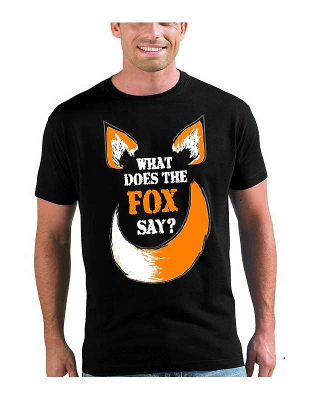 Camiseta con diseño exclusivo Tail Fox inspirado en la famosa canción "what does the fox say" del grupo musical Ylvis . Camiseta manga corta y de color negro 100% algodón.